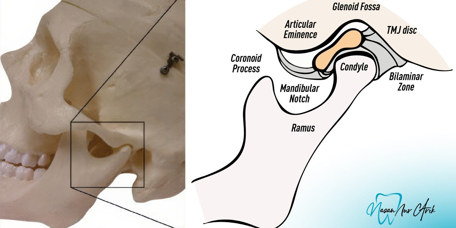 Temperomandibuler eklem alt çenenin sağ ve sol bölgesinden yukarıya doğru kafa iskeletine doğru uzanan kondil dediğimiz bir kemik yapısına sahiptir. Kondil ile kafa kemiği arasında disk mevcuttur.